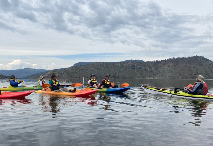 Description: The sweeping hillsides and cliffsides of Prineville Reservoir create a stunning backdrop for our guided kayak tour. Paddle with our interpretive staff and learn about local geology, area history, Water cycle and the plants and animals of the High Desert. Allow up to 3 hours for the tour, including pre-launch gear setup and post-launch check in. Kayak, paddle and PFD provided (you must use our gear). Minimum age: Children 8 – 11 must ride with an adult in a tandem kayak, 12 - 17 may ride in a single – all children must be accompanied by an adult. Animals are not allowed on the kayak tour.